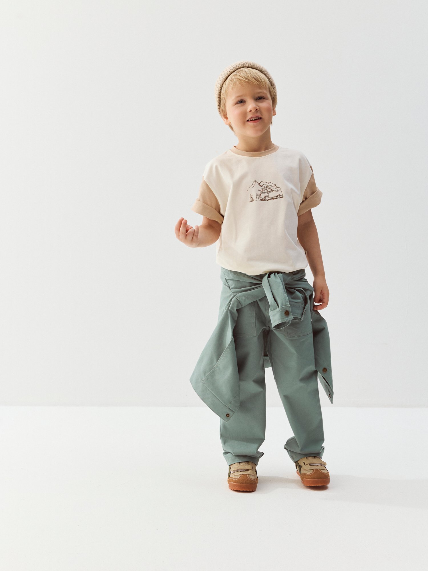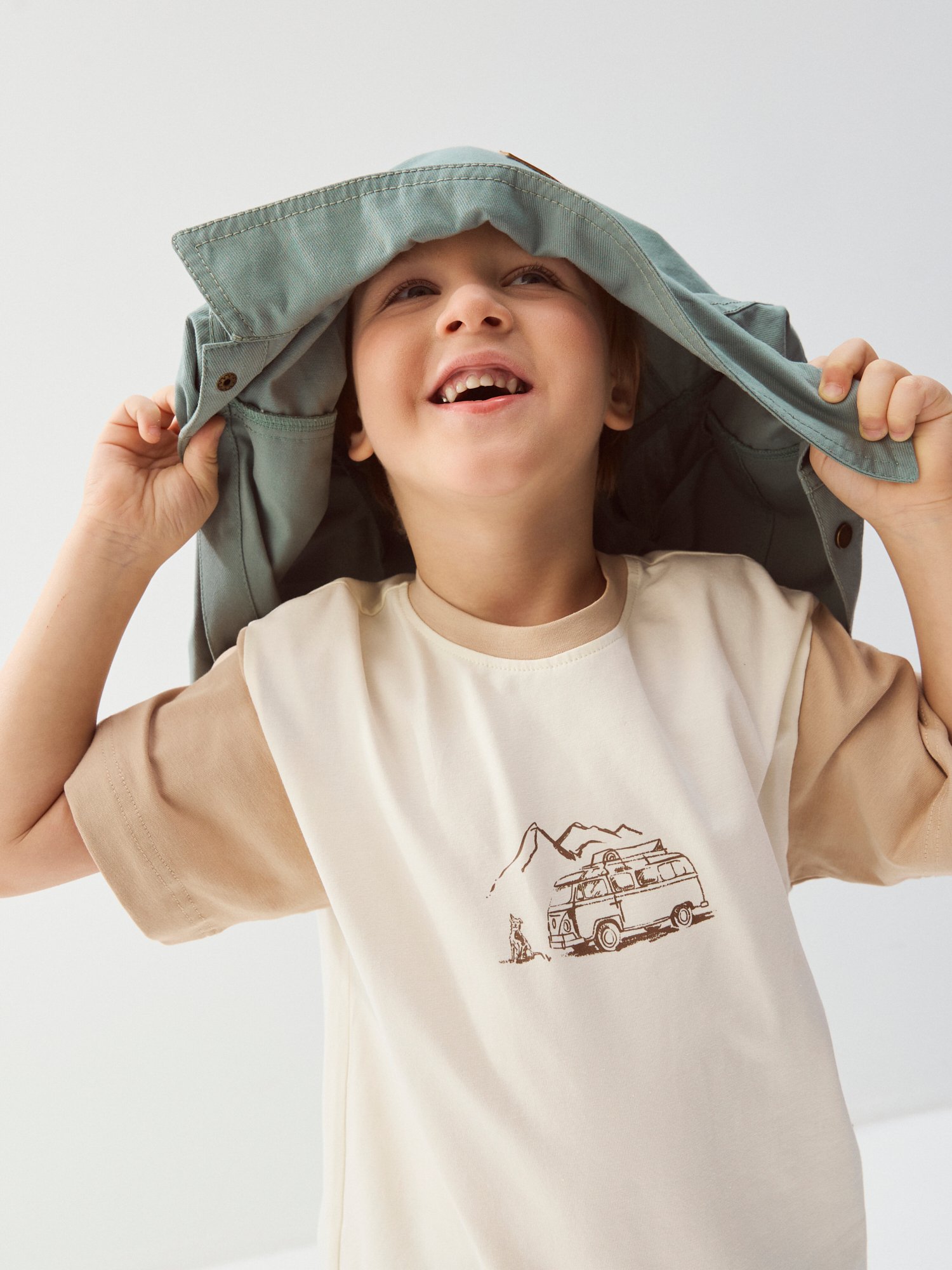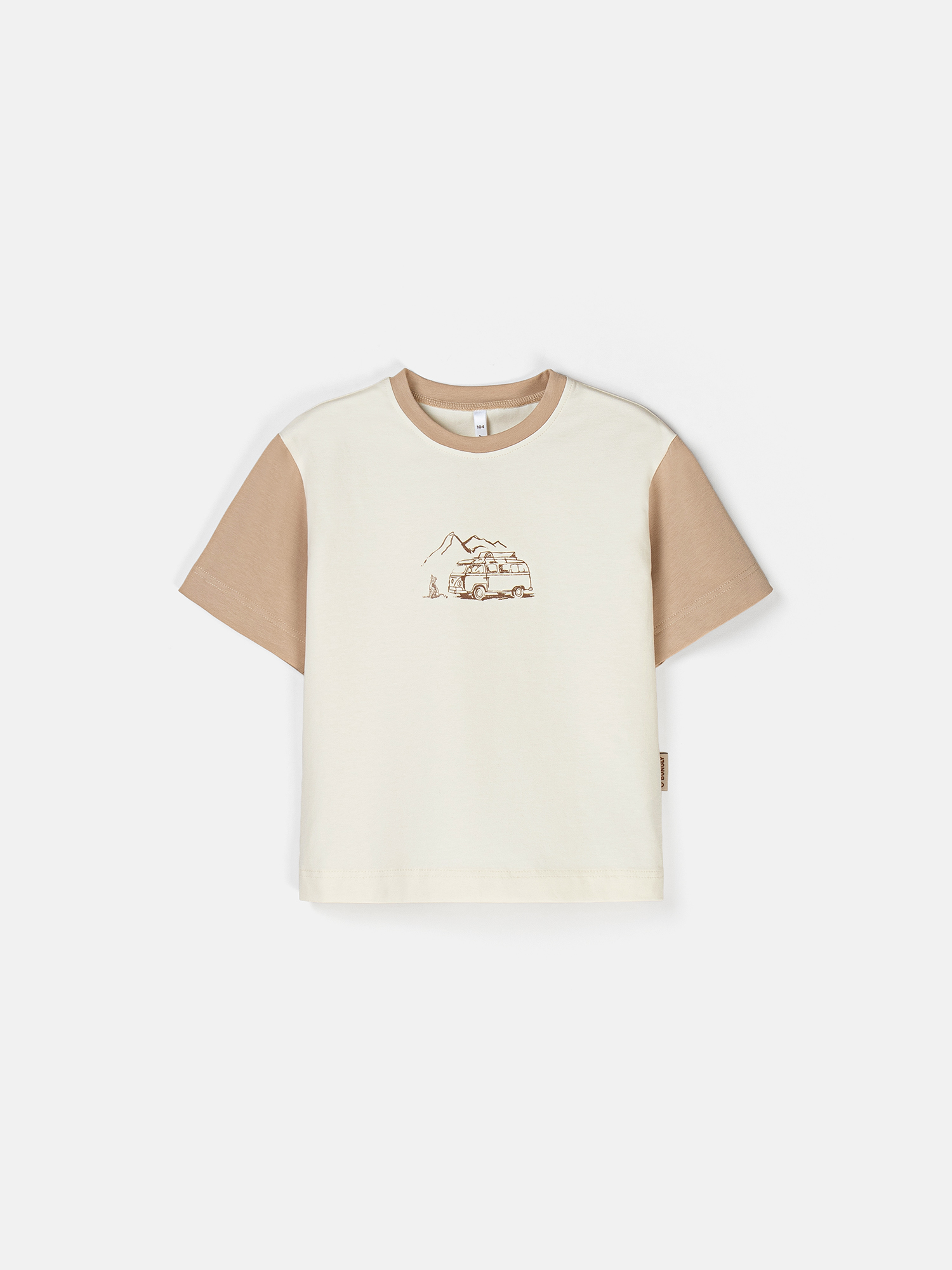Футболка-оверсайз со стойким принтом и цветными рукавами для освежающих образов.