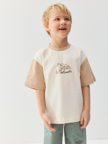 Футболка-оверсайз со стойким принтом и цветными рукавами для освежающих образов.