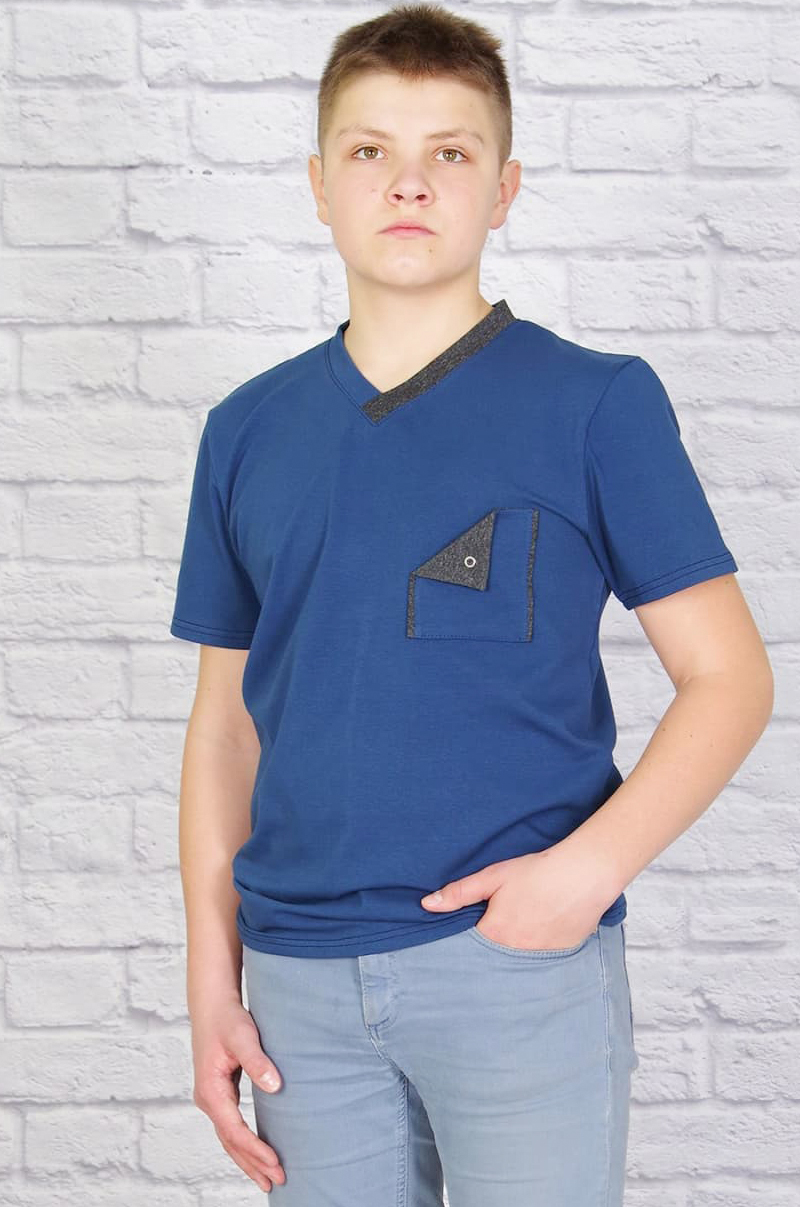 Стильная мужская футболка с V-образным вырезом и нагрудным карманом.