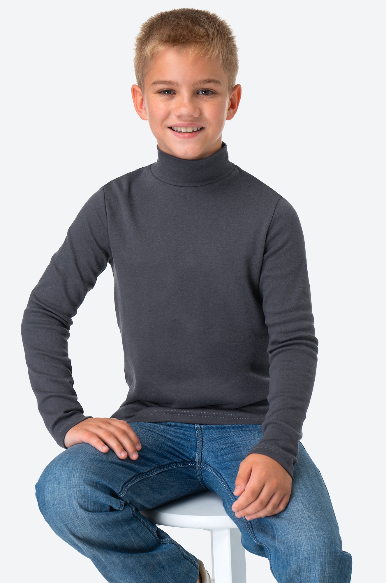 Графитовая водолазка для мальчиков и мальчиков подростков выполнена из 100% хлопка, который дарит запредельную мягкость и приятные прикосновения.