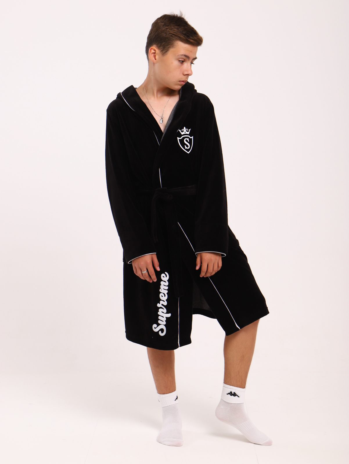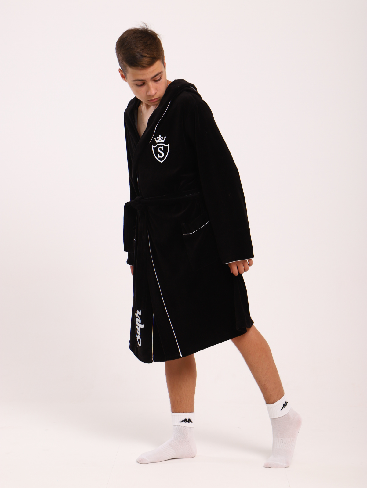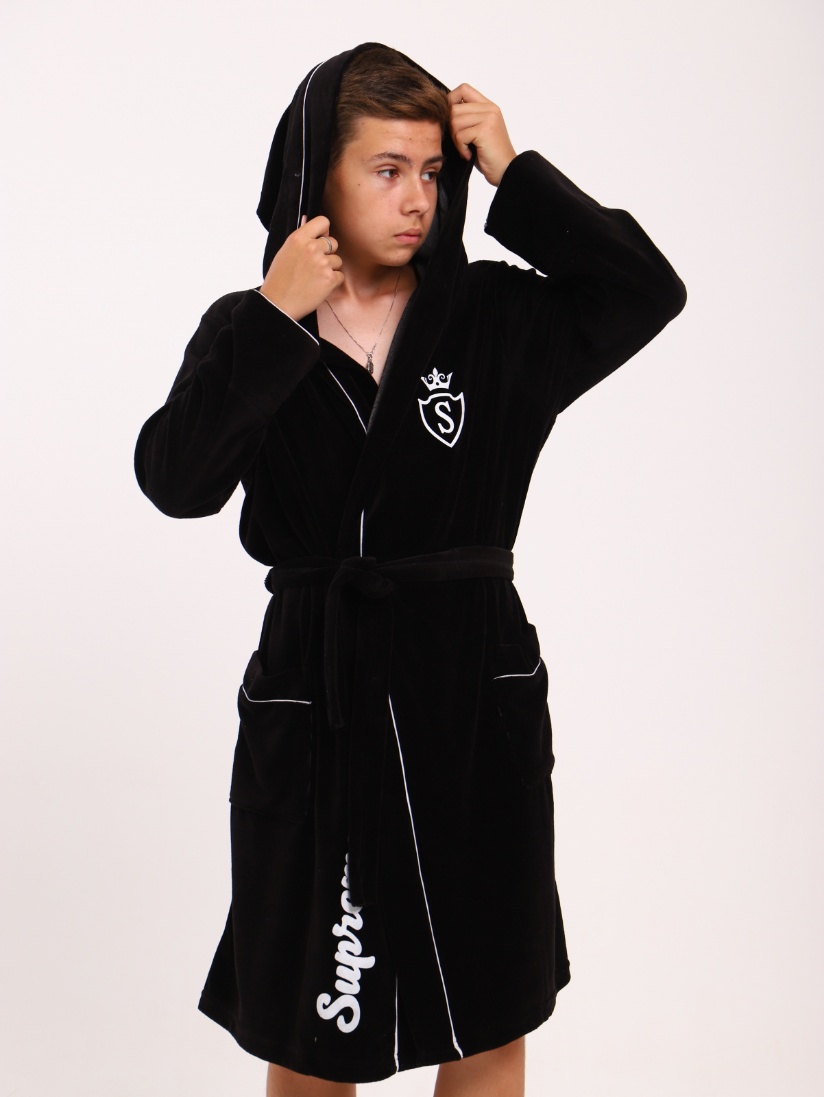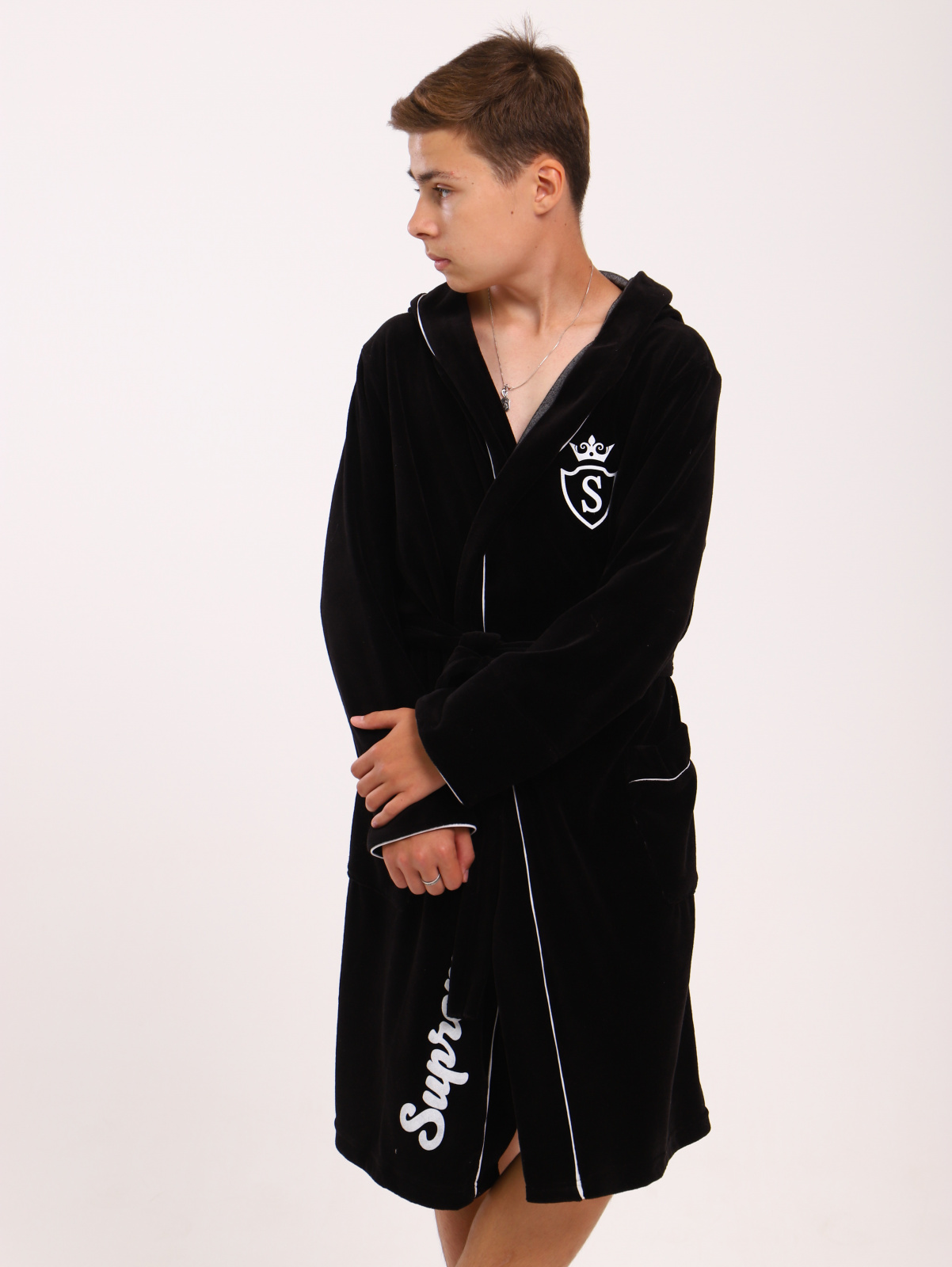 Домашний халат для мальчика отлично согревает в холодное время года, однако при этом дышит. У халата детского из велюра высокая износостойкость. Такой вариант легкий и свободный, практически не ощущается на теле. Халат с большим капюшоном, накладными карманами, длинными рукавами, на запах с поясом. Посадка по фигуре гарантирует комфорт. Рекомендуем как домашнюю одежду, как банный халат. Так же можно использовать его для тепла после занятий в бассейне. Размерный ряд: 134,140,146, 152, 158, 164.