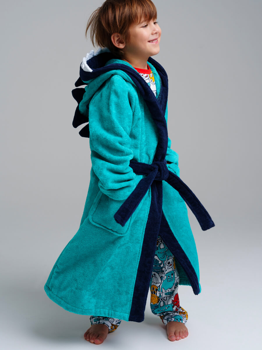 Мягкий и уютный махровый халат из высококачественного полотна. 100% натуральный хлопок. Отлично впитывает влагу и позволяет коже дышать. Капюшон декорирован. Пришитый пояс, по спинке резинка.