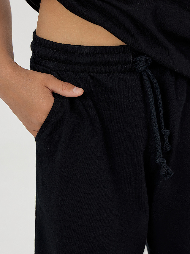 Шорты из трикотажного кулирного полотна длиной до колена. Спереди есть карманы «хулиганы». Пояс с эластичной резиной внутри и регулировочным шнуром. Рекомендуем!