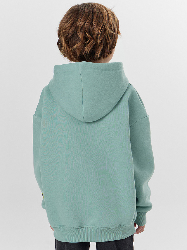 Худи свободного силуэта для мальчиков. Изготовлено из легкого трикотажного футера без подчеса. Есть удобный капюшон, который состоит из двух частей, а спереди идет внахлест. Рукава длинные, на манжетах из рибаны – как и пояс по нижнему срезу. Линия плеча слегка спущена, а плечевые швы перенесены вперед, что гарантирует свободу движений. Изюминкой модели является вместительный карман-кенгуру. Рекомендуем!