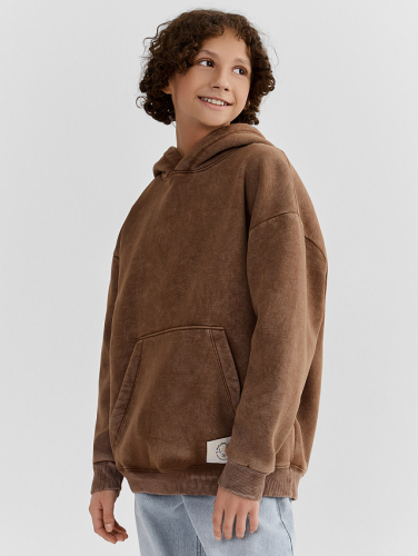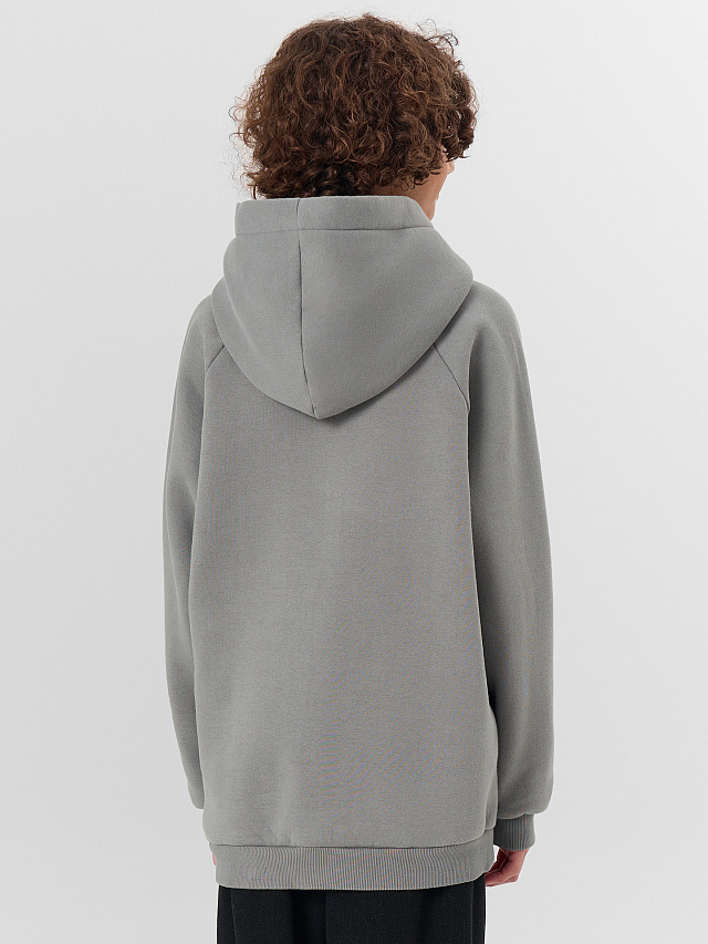 Утепленное худи для мальчиков, выполненное из дегкого трикотажного футера. Силуэт прямой, расслабленный. Вырез круглый, с объемным капюшоном. Рукава длинные и объемные, с манжетами. Мальчику наверняка понравятся принты и цвет этого худи