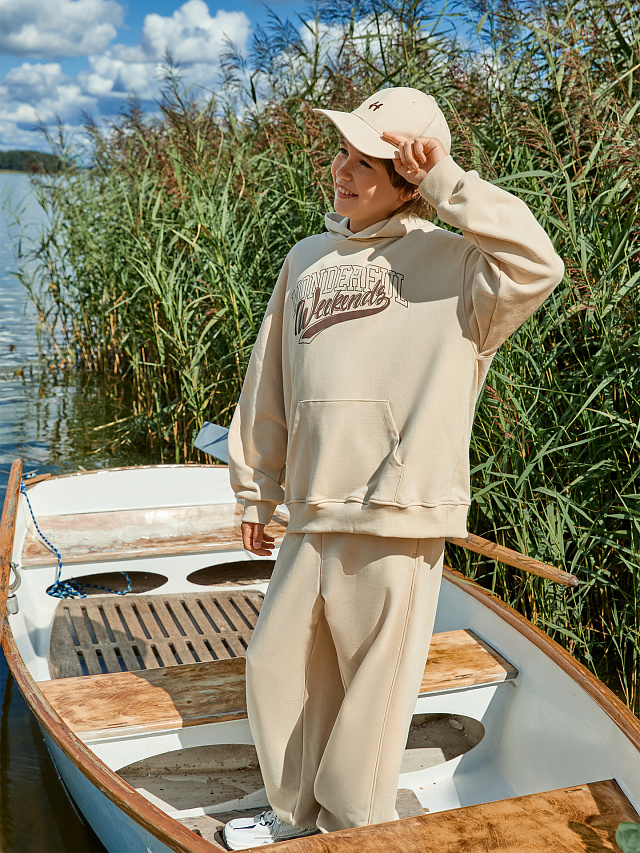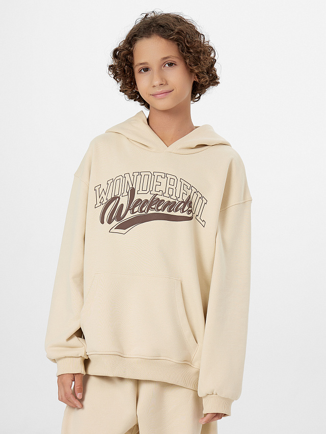 Худи для мальчиков бежевое с надписью "Wonderful weekends"