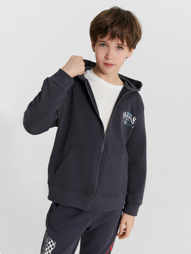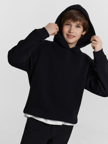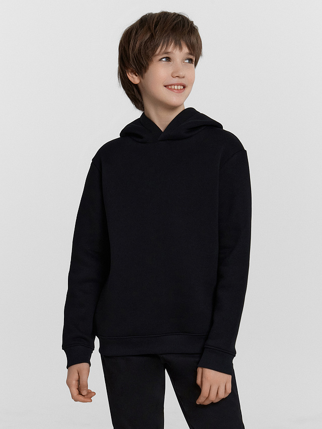 Стильное худи из футера с подчесом – нежного и долговечного трикотажного полотна. Силуэт прямой и свободный. Уютный капюшон, длинные рукава на манжетах, немного спущенная линия плеча – максимально комфортная модель!