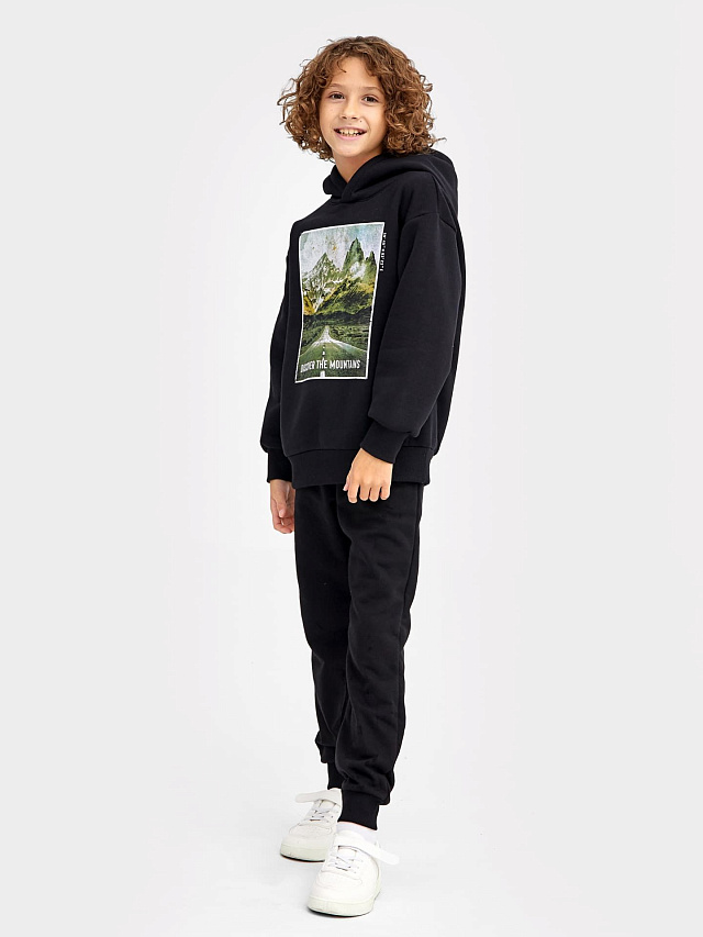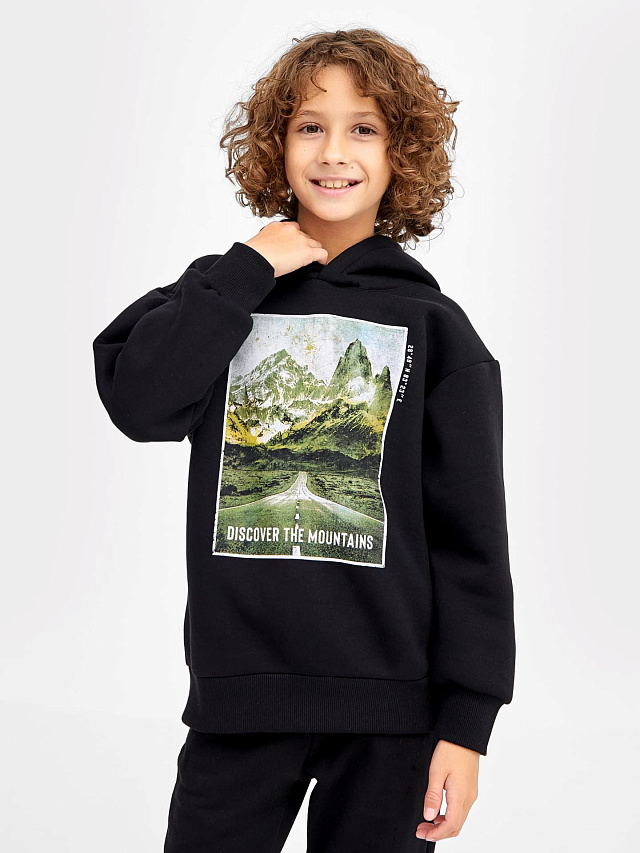 Худи для мальчиков черное с печатью