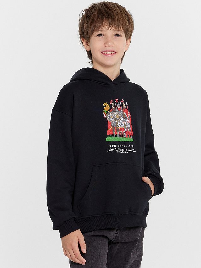 Худи для мальчиков черное с принтом "Три богатыря"