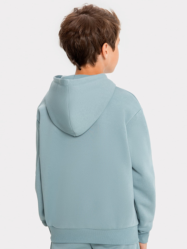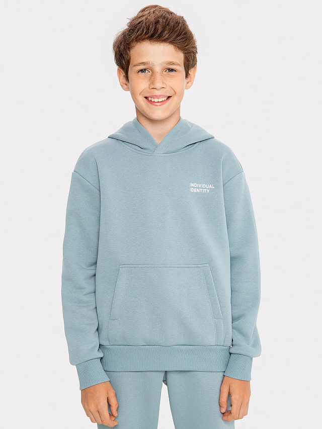 Худи для мальчиков серо-голубой с печатью