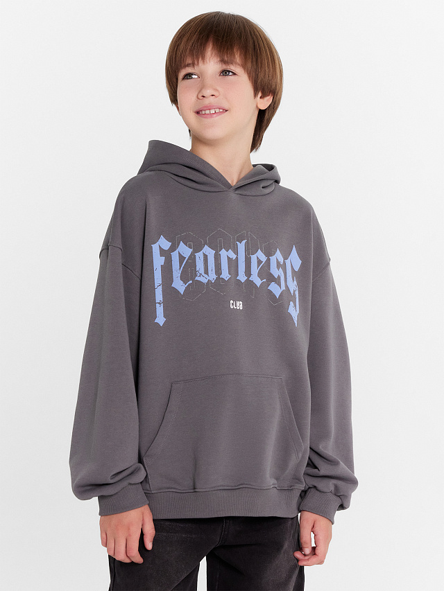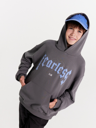 Худи для мальчиков серое с печатью