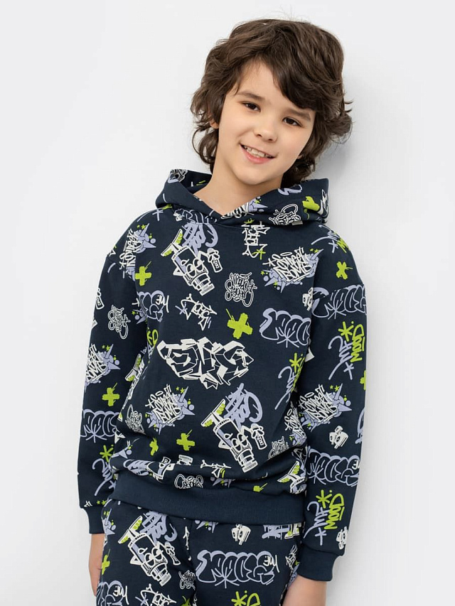 Худи для мальчиков темно-синие с рисунком граффити
