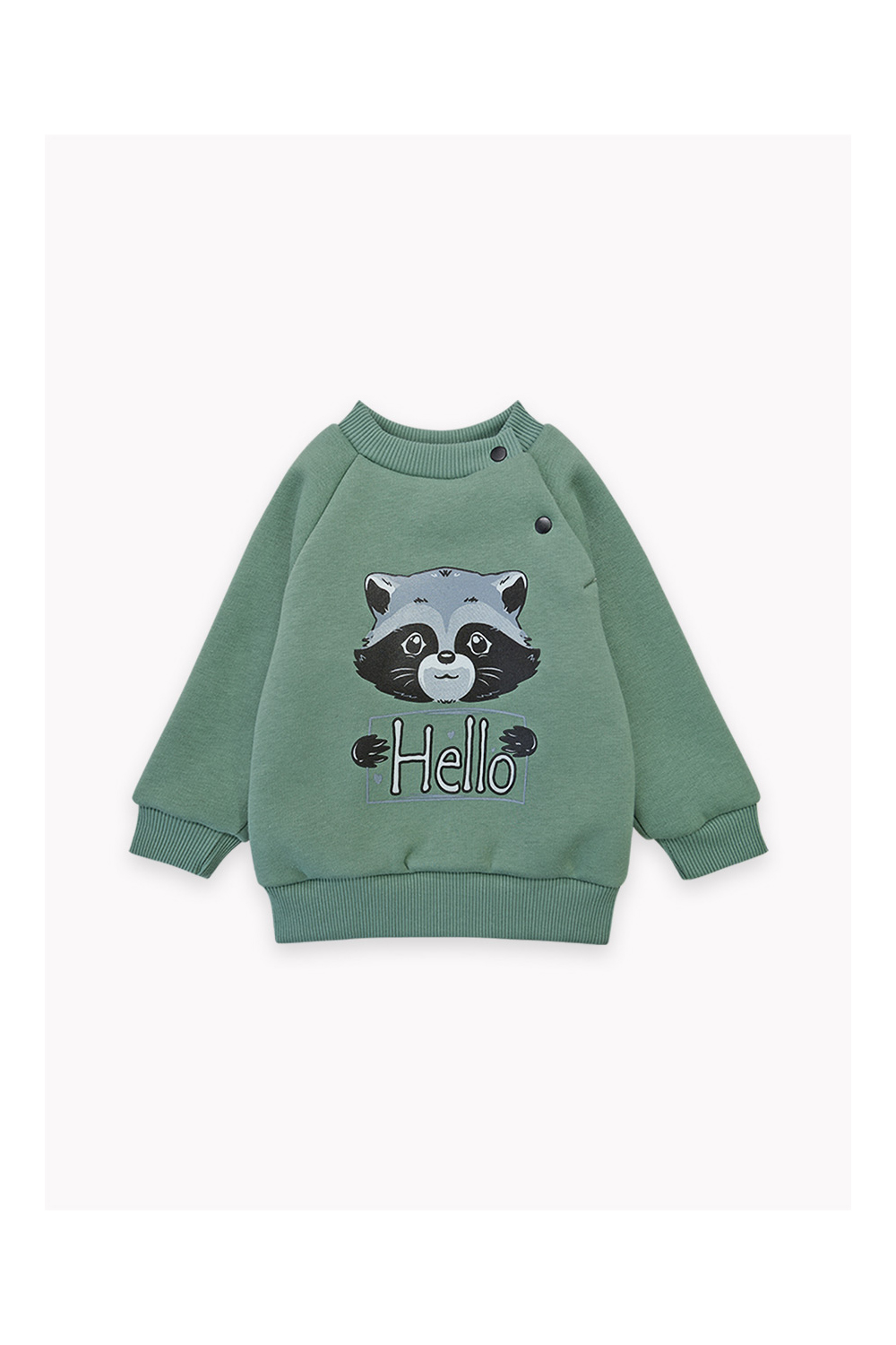 Толстовка Енот для мальчика, предназначена для носки в прохладных помещениях и прогулки на улице, выполнена из мягкого футера с начёсом. Толстовка на эластичном поясе, рукава покроя реглан на манжетах, застёжка по шву рукава-реглан на клёпки. Принт, нанесённый методом шелкографии на ткани. Цвет: мокко;зеленый гранит; Материал: футер 3-х нитка с начесом;футер 3-х нитка с начесом; Состав: 70% хлопок, 30% ПЭ.