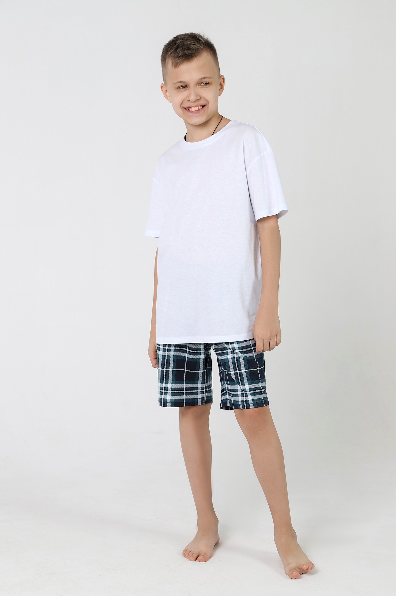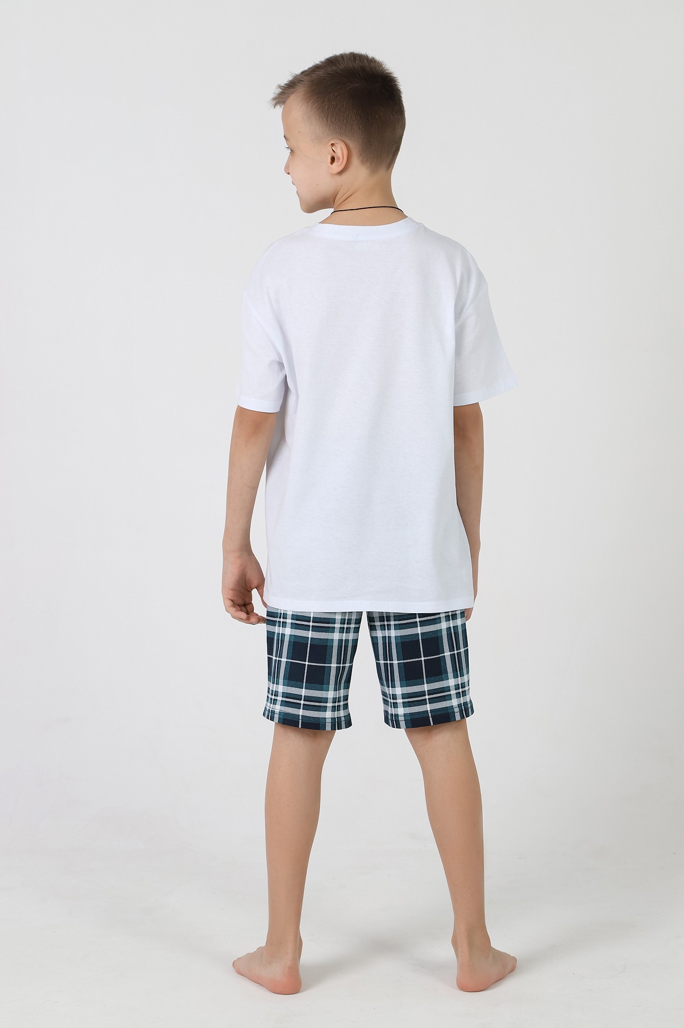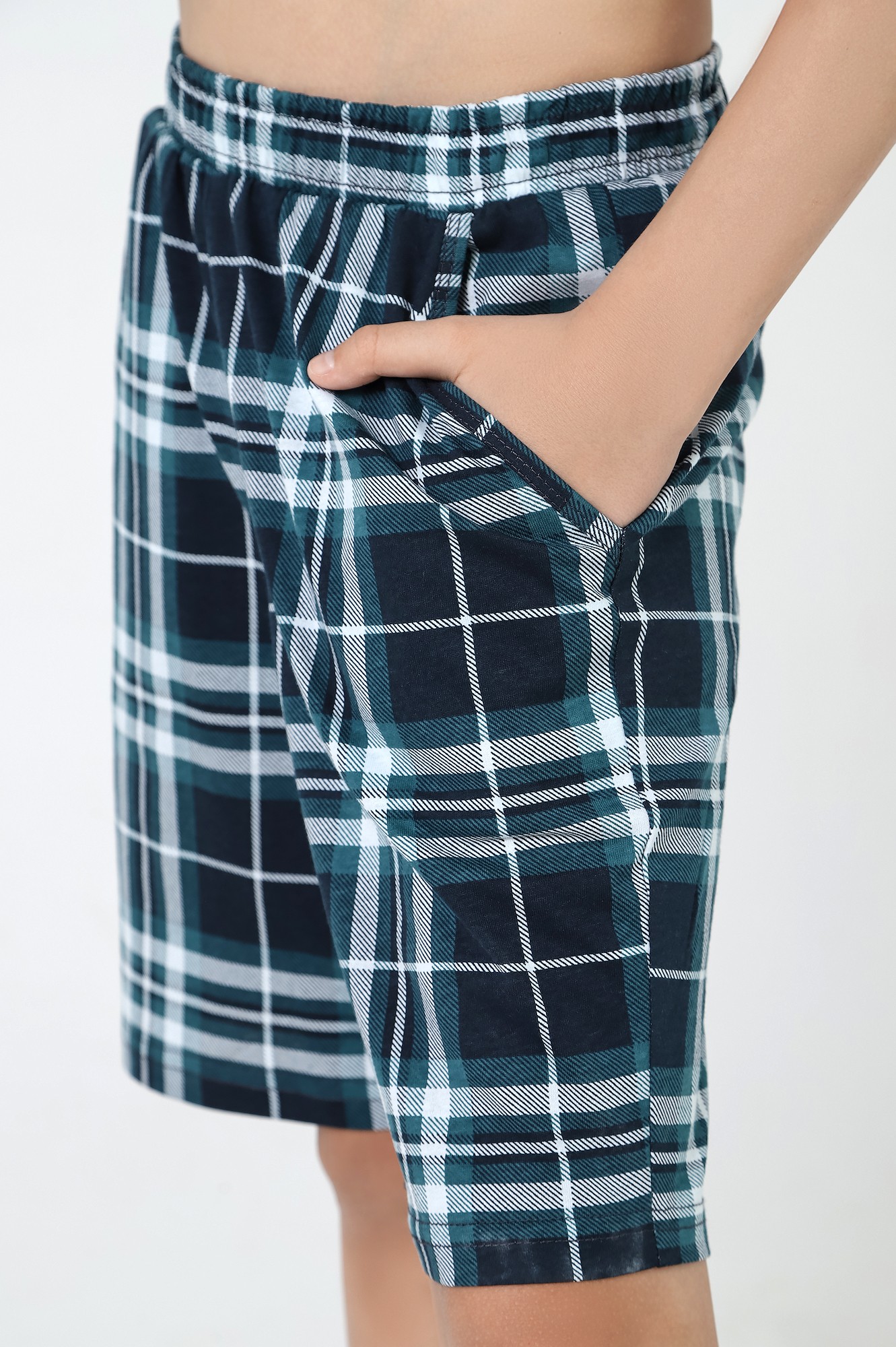 Базовые шорты для мальчика, из кулирки с набивным рисунком. Модель с боковыми карманами, на притачном поясе с отстроченной эластичной тесьмой.