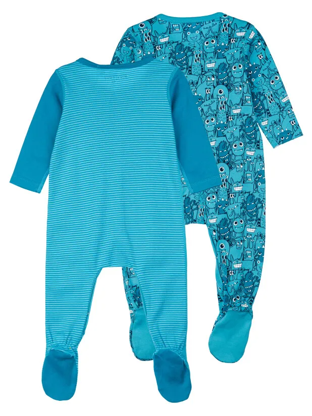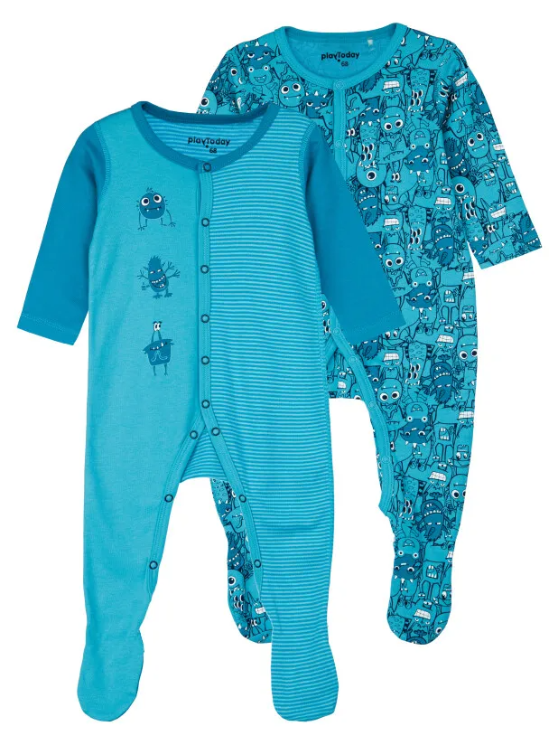 Комбинезон из натурального, хлопкового, двойного трикотажа. 100% хлопок. Застежка на кнопки. На пятке легкая фиксация тонкой резинкой. 2 шт в комплекте.