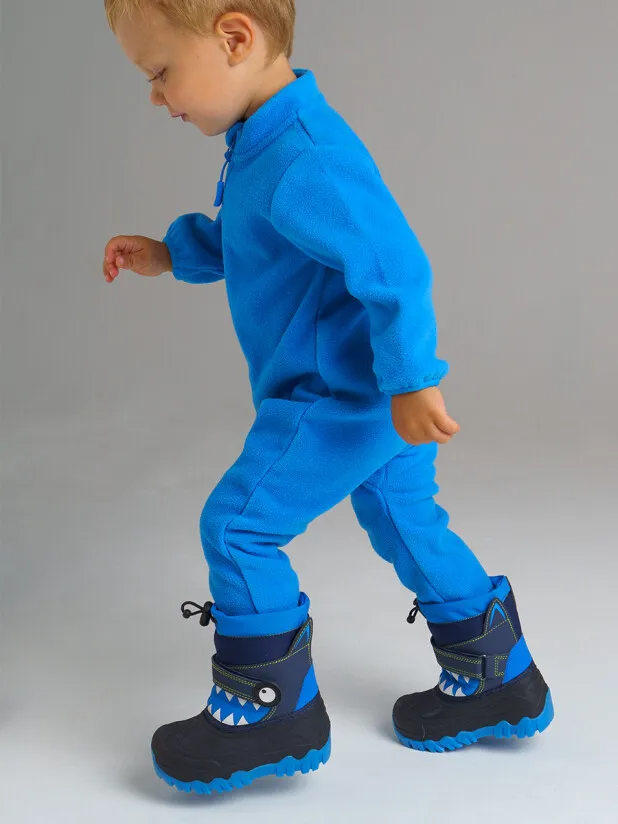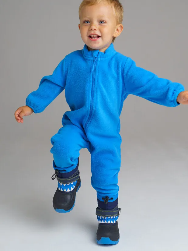 Комбинезон из качественного плотного флиса на молнии. Воротник–стойка. Манжеты, горловина и кромка с эластичной окантовкой. Защитная планка и защита подбородка. Комфорт посадки на малышах обеспечен за счет конструктивной резинки на поясе сзади.