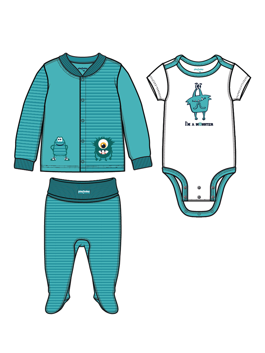 Комплект детский трикотажный для мальчиков: боди, кофточка, ползунки