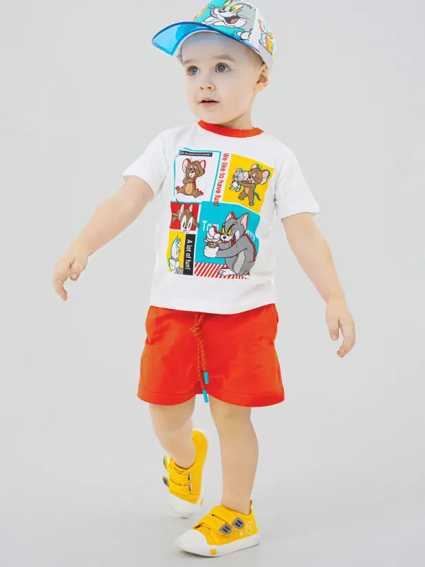 Комплект: футболка и шорты из качественного эластичного и приятного на ощупь трикотажа. Застежка на кнопки на плече. Шорты с карманами в боковых швах. Эластичный пояс со шнурком. Посадка regular fit – классический крой. Высокое содержание хлопка 95%. Благодаря наличию эластана в составе ткани изделие держит форму и меньше мнется.