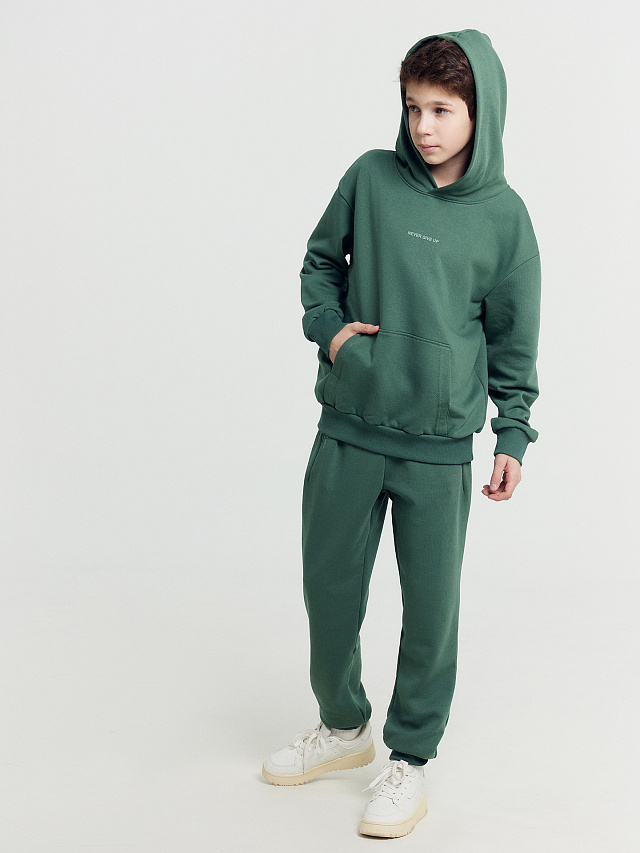 Комплект для мальчиков (анорак, брюки) зеленый с печатью