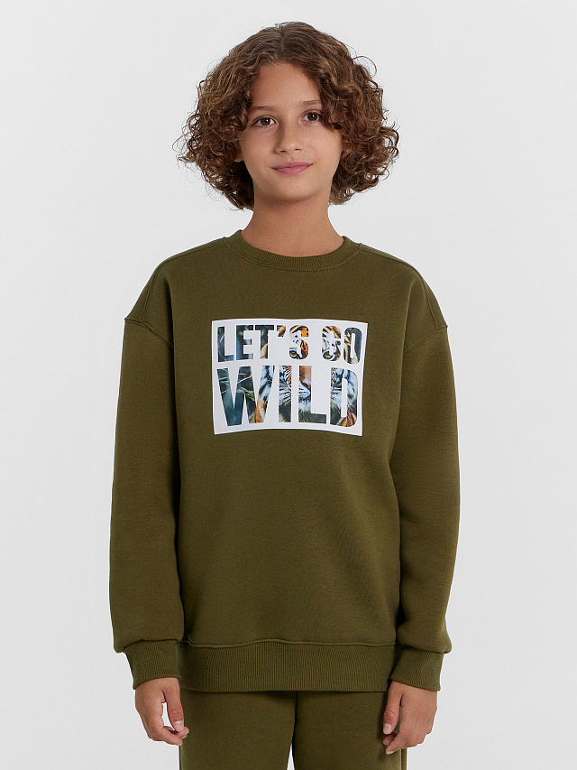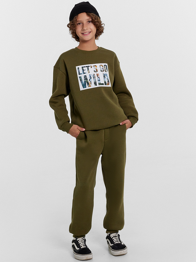 Комплект для мальчиков (джемпер, брюки) оливково-зеленый с печатью