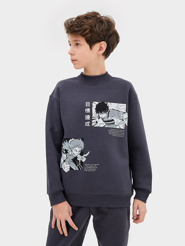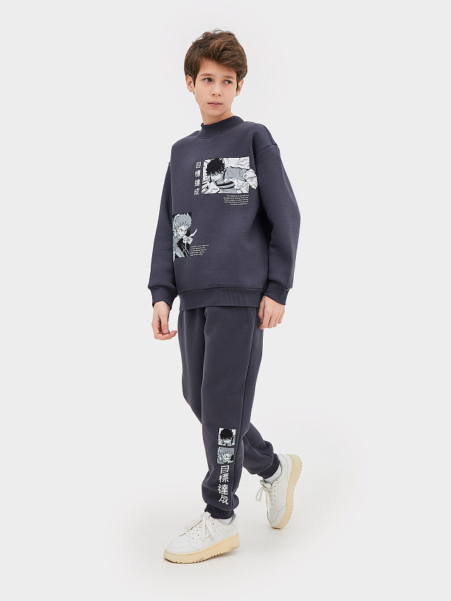 Комплект для мальчиков (джемпер, брюки) серый с печатью