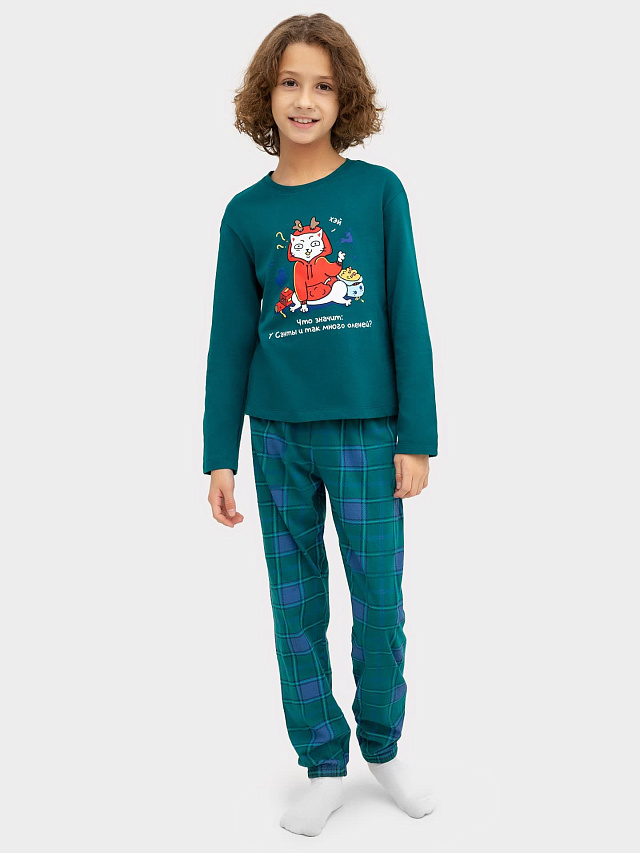 Повседневная пижама для мальчиков, состоит из джемпера с длинными рукавами и брюк. Изготовлена пижама для мальчика из высококачественного натурального хлопка, что обеспечивает комфорт как в летний, так и в зимний период. Материал хорошо тянется, быстро впитывает влагу и легко сохнет, не сковывает движений и не создает парникового эффекта. Отличный вариант для каждодневной носки. Пижама детская для подростка мальчика идеально подходит для отдыха в комфортной домашней обстановке и сна. В линейке много интересных расцветок, есть красивые варианты с принтами. Модель пижамы хорошо садится как на высоких мальчиков, так и на невысоких. Рекомендуем эту практичную пижамку для вашего ребенка!