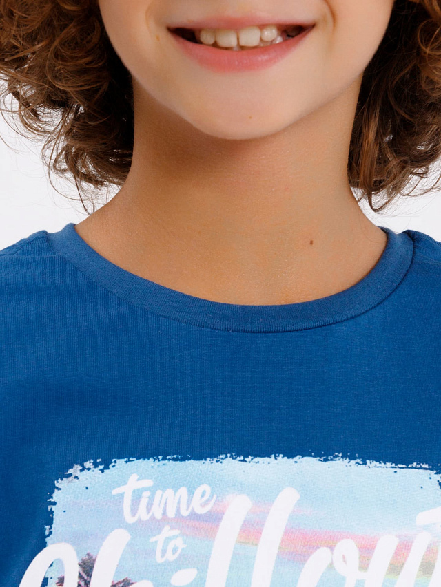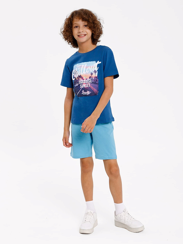 Комплект для мальчиков (джемпер, шорты) сине-голубой с печатью