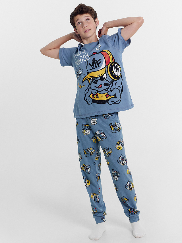 Уютная детская пижама (комплект) для мальчиков из высококачественного хлопка. Состоит из футболки с коротким рукавом и длинных брюк с эластичной резинкой в поясе. Брюки завершаются манжетами. Натуральный материал хорошо тянется, хорошо впитывает влагу и быстро сохнет, не сковывает движений и не создает парникового эффекта. Отличный вариант для каждодневной носки. Пижама детская для подростка мальчика подходит для отдыха в комфортной домашней обстановке и сна. В линейке много интересных расцветок, есть красивые модели с принтами. Если вы устали от простых и незамысловатых моделей и хотите разнообразить гардероб вашего ребенка, этот комплект вас порадует!