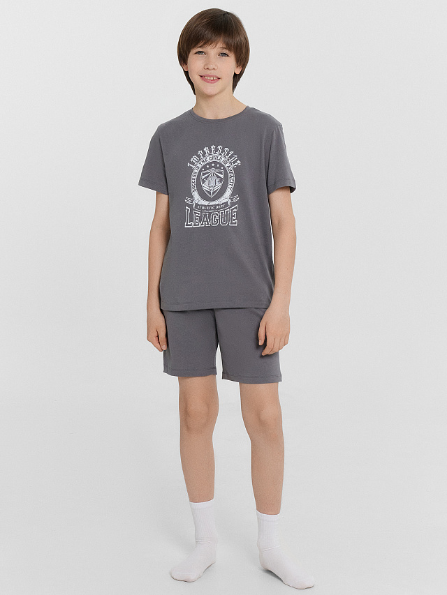 Пижама для мальчиков — идеальное сочетание комфорта и практичности для сна и отдыха! Комплект включает свободную футболку с круглой горловиной и короткими рукавами, обеспечивающую удобную посадку и комфорт в течение ночи. Шорты длиной до колен дополнены эластичной тесьмой в поясе, что позволяет регулировать посадку и гарантирует свободу движений. Изделие выполнено из хлопковой кулирки — мягкого и воздухопроницаемого материала, который приятно прилегает к коже и дарит ощущение легкости. Такая ткань обеспечивает уют и комфорт в любую погоду. Этот комплект станет отличным выбором для спокойного сна и расслабленного домашнего отдыха, позволяя ребёнку чувствовать себя комфортно и свободно. Универсальная и удобная модель для повседневного гардероба!