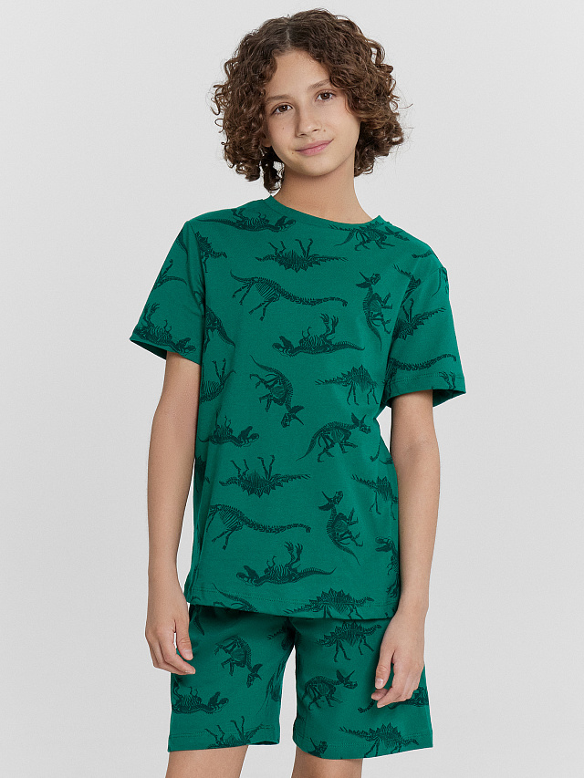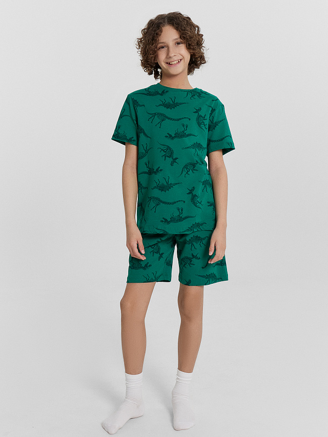 Пижама для мальчиков — идеальное сочетание комфорта и практичности для сна и отдыха! Комплект включает свободную футболку с круглой горловиной и короткими рукавами, обеспечивающую удобную посадку и комфорт в течение ночи. Шорты длиной до колен дополнены эластичной тесьмой в поясе, что позволяет регулировать посадку и гарантирует свободу движений. Изделие выполнено из хлопковой кулирки — мягкого и воздухопроницаемого материала, который приятно прилегает к коже и дарит ощущение легкости. Такая ткань обеспечивает уют и комфорт в любую погоду. Этот комплект станет отличным выбором для спокойного сна и расслабленного домашнего отдыха, позволяя ребёнку чувствовать себя комфортно и свободно. Универсальная и удобная модель для повседневного гардероба!