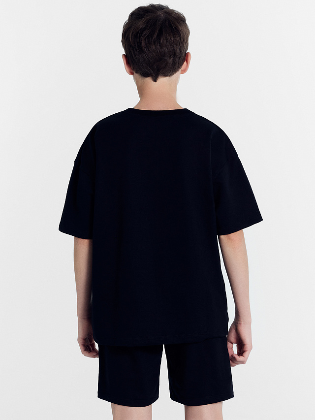 Комплект для мальчиков (футболка, шорты) черный с печатью