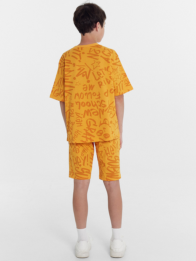 Комплект для мальчиков (футболка, шорты) оранжевый с граффити