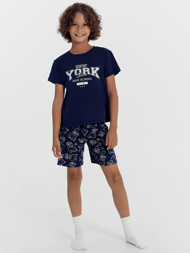 Комплект для мальчиков (футболка, шорты) синий с собачками