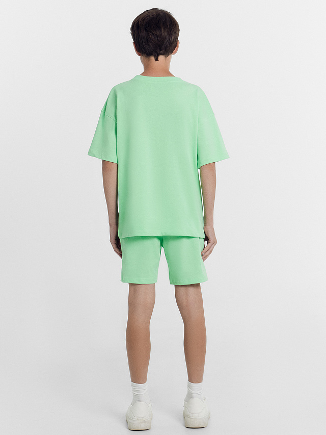 Комплект для мальчиков (футболка, шорты) светло-зеленый с печатью