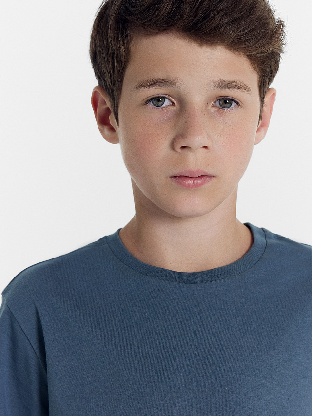 Комплект для мальчиков (футболка, шорты) в серо-синем цвете