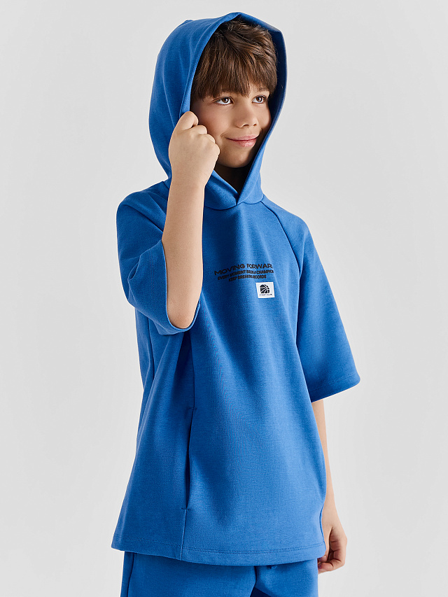 Худи оверсайз с капюшоном.. Рукава короткий, реглан. Горловина круглой