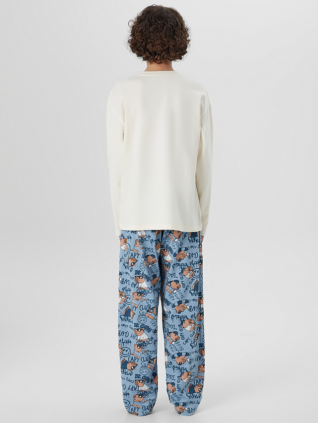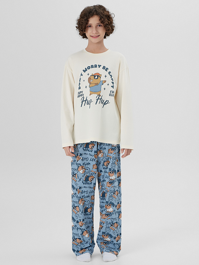 Комплект для мальчиков состоит из лонгслива и брюк.
