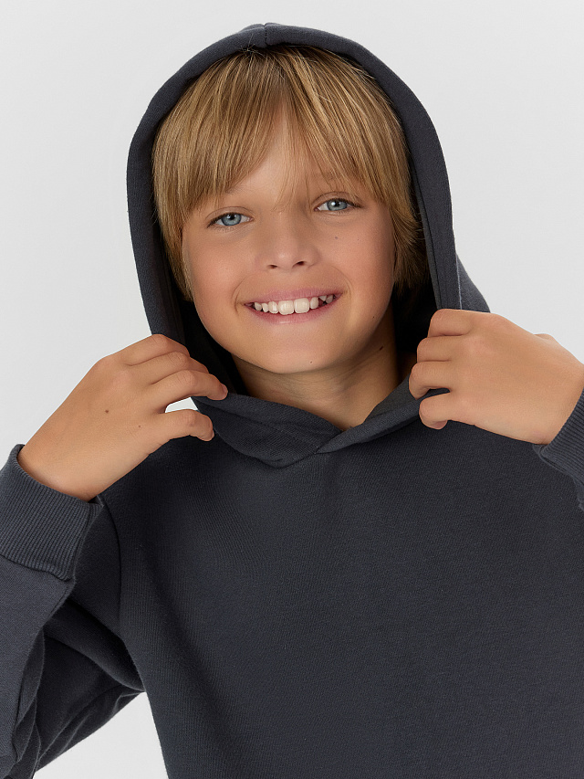Спортивный костюм для мальчиков — это уют и свобода для активного образа жизни. Набор из худи и брюк выполнен из футера с начесом, который сохраняет тепло, позволяет коже дышать и выдерживает активные игры.