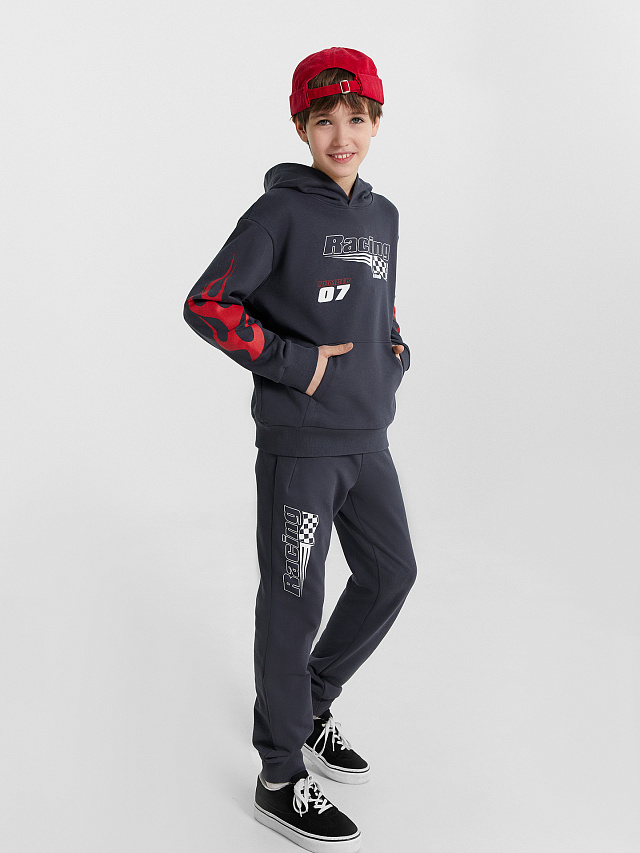 Комплект для мальчиков серый с принтом и надписью "Racing"