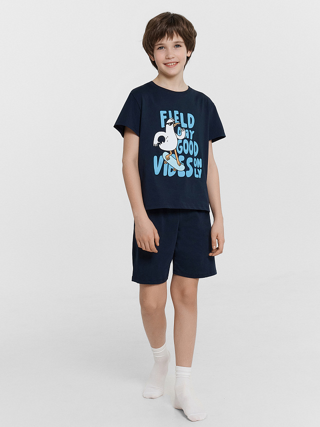 Комплект для мальчиков синий с принтом и надписью "Field day good vibes only"