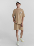 Брюки джоггеры свободные. Пояс отризной с эластичной тесьмой внутри 50RV. С внешней стороны пояса пробиты петли и втянут шнур 8PXC-2. Карманы в боковых швах. По низу отрезные манжеты из рибаны.