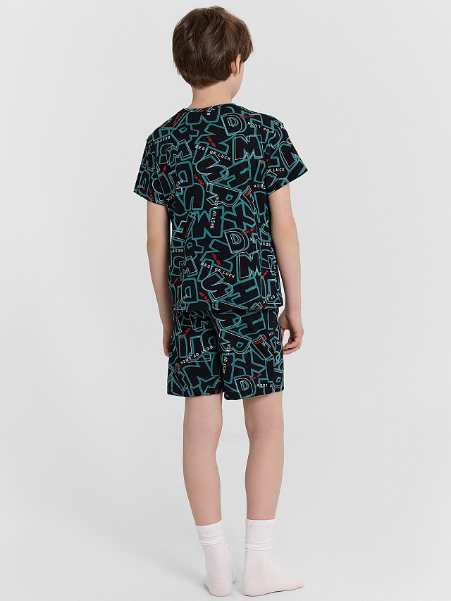 Домашний комплект для мальчиков — идеальное сочетание комфорта и практичного дизайна. Футболка прямого силуэта с короткими рукавами и круглой горловиной обеспечивает удобную посадку и свободу движений. Легкий крой делает ее комфортной для сна и повседневного отдыха. Шорты длиной до колен оснащены эластичным поясом с регулируемым шнурком, что позволяет индивидуально подстраивать посадку, обеспечивая дополнительный комфорт. Выполненный из 100% хлопка, комплект мягкий, дышащий и приятный к коже, создавая максимальное удобство. Этот вариант отлично подойдет мальчикам, которые ценят удобство, качество и стиль, делая отдых и сон еще более приятным!