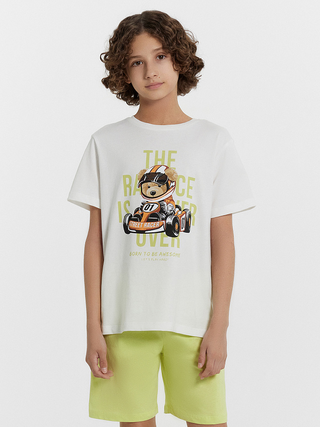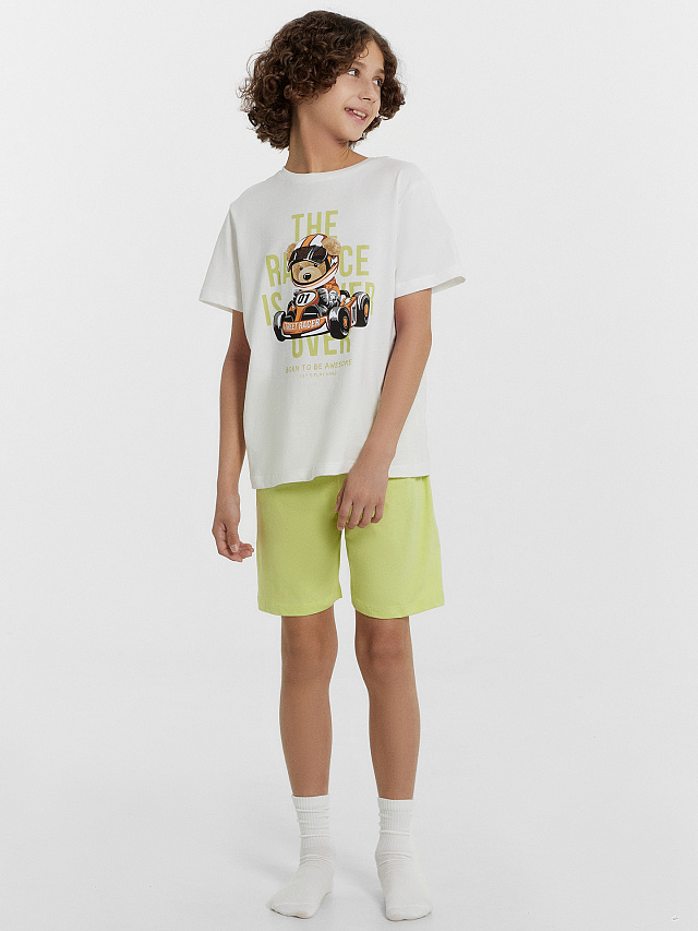 Пижама для мальчиков - это отличный комплект для сна и отдыха. Футболка имеет круглую горловину и короткие рукава, обеспечивающие комфорт и свободу движений. Шорты длиной до колен оснащены эластичной тесьмой в поясе для надежной посадки. Модель выполнена из хлопковой кулирки - натурального материала, который обладает отличной воздухопроницаемостью и мягкостью. Благодаря этим свойствам, такая пижама идеально подходит для сна и отдыха, создавая уют и комфорт в любое время года.