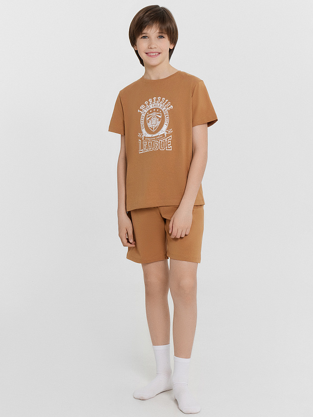 Пижама для мальчиков — идеальное сочетание комфорта и практичности для сна и отдыха! Комплект включает свободную футболку с круглой горловиной и короткими рукавами, обеспечивающую удобную посадку и комфорт в течение ночи. Шорты длиной до колен дополнены эластичной тесьмой в поясе, что позволяет регулировать посадку и гарантирует свободу движений. Изделие выполнено из хлопковой кулирки — мягкого и воздухопроницаемого материала, который приятно прилегает к коже и дарит ощущение легкости. Такая ткань обеспечивает уют и комфорт в любую погоду. Этот комплект станет отличным выбором для спокойного сна и расслабленного домашнего отдыха, позволяя ребёнку чувствовать себя комфортно и свободно. Универсальная и удобная модель для повседневного гардероба!