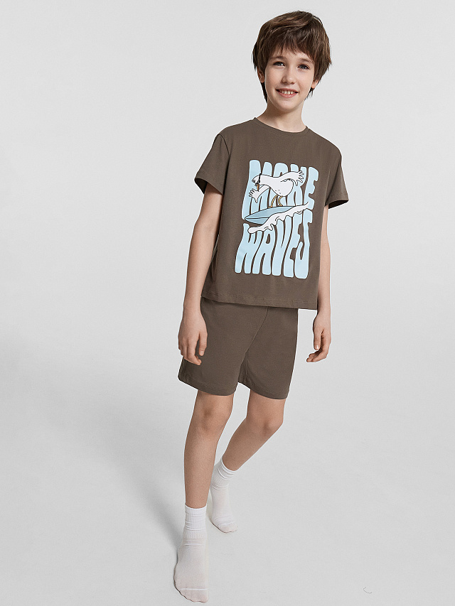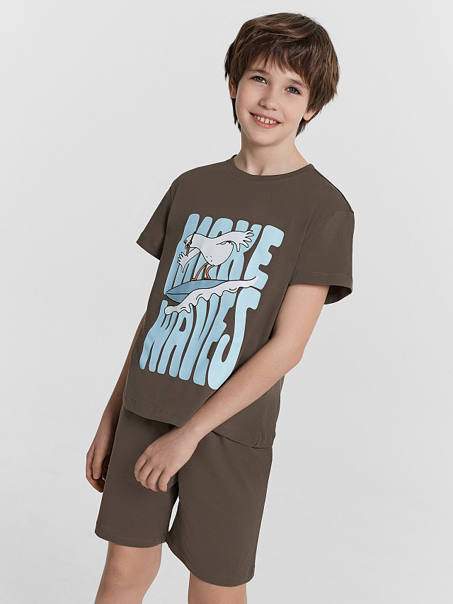 Комплект домашний для мальчиков с принтом и надписью "make waves"