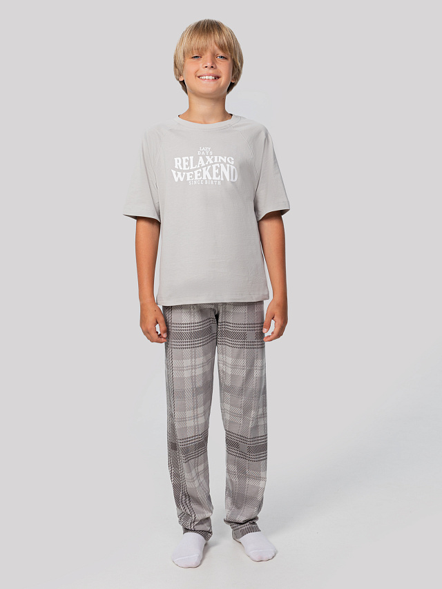 Комплект домашний для мальчиков серый с надписью "relaxing weekend"