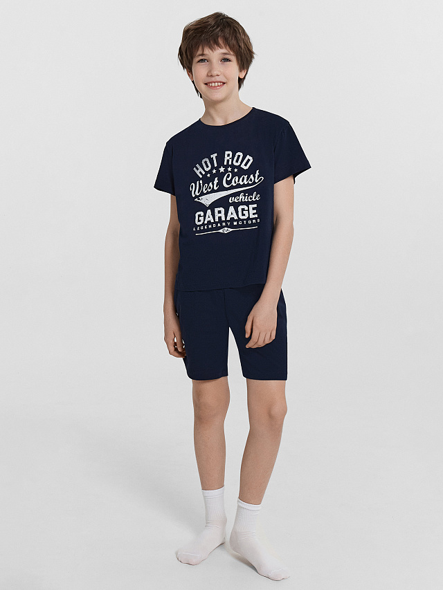 Комплект домашний для мальчиков синий с принтом "West coast"