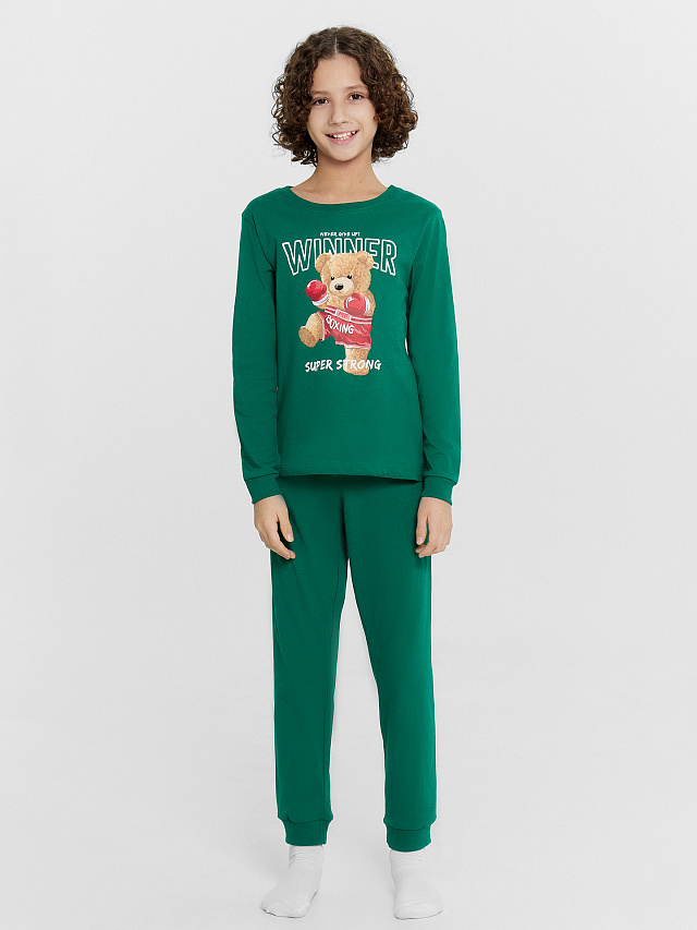 Комплект домашний для мальчиков зеленый с принтом и надписью "Winner"