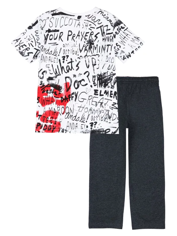 Пижама: футболка, брюки из качественного и приятного на ощупь трикотажа джерси. 100% хлопок. Футболка oversize. Брюки comfort fit с эластичным поясом со шнурком. Карманы в боковых швах.