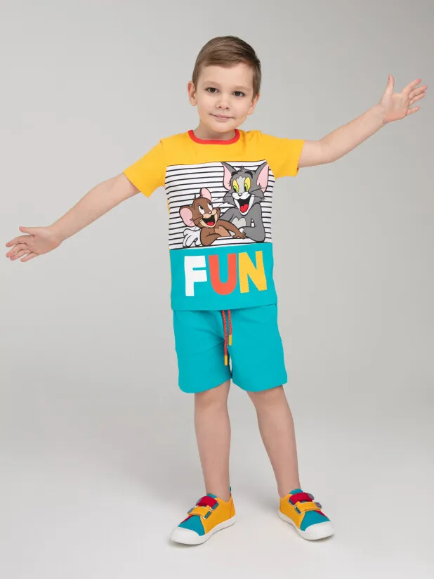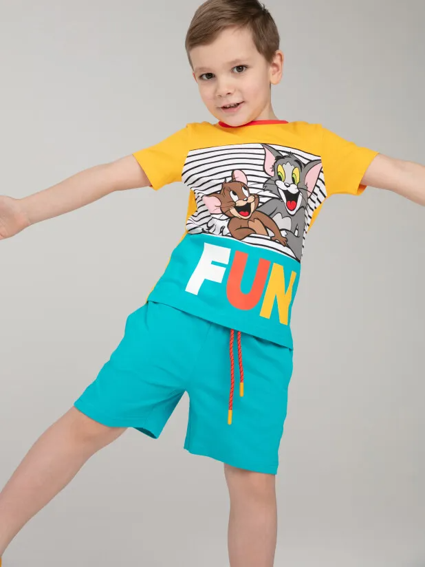 Комплект: футболка и шорты из качественного эластичного и приятного на ощупь трикотажа. Посадка regular fit – классический крой. На шортах эластичный пояс со шнурком. Карманы в боковых швах. Высокое содержание хлопка 95%. Благодаря наличию эластана в составе ткани изделие держит форму и меньше мнется.
